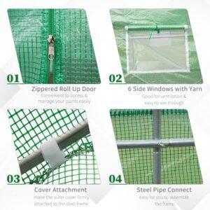 Walk-in Tunnel Greenhouse with Roll-Up Door and Windows, Plant Growing House for Patio Backyard Garden